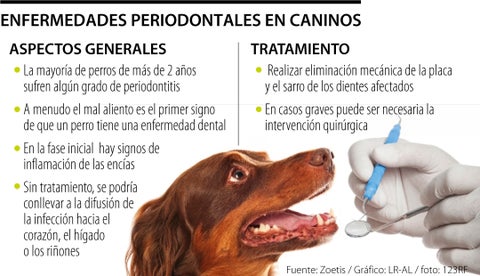 Un mal cuidado de la higiene bucal de nuestras mascotas puede conllevar a la generación de enfermedades que desencadenen daños mayores en la salud del animal. La periodontitis en perros es la acumulación de sarro junto con infección de las encías. Según la compañía española Zoetis, la mayoría de perros de más de 2 años de edad sufren en algún grado esta enfermedad. Uno de sus síntomas es la halitosis o mal aliento.