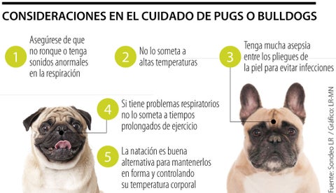 Es fundamental atender los problemas respiratorios y controlar la temperatura del canino, también hay patologías producto de los pliegues de la piel