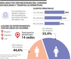 En Bogotá, Cali y Medellín se calcula que hay por lo menos 14 sedes de espacios dedicados a los inflables que eran de niños, las casas de goma o saltarines populares con sus colores en los 90 pero que hoy su público no son niños sino adultos.