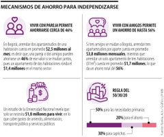 Según datos de la consultora Cbre Group, en Colombia, al igual que en otros países de América Latina, los jóvenes dejan su casa a los 28 años, mientras que en Estados Unidos lo hacen a los 24 y, en Europa, a los 26. Bbva asegura que el método del 50/30/20 es uno de los más útiles al momento de irse a vivir solo; esta consiste en coger todos los ingresos mensuales y dividirlos en porcentajes que son: 50% para las necesidades primarias; 30% para capricho y 20% para el ahorro.